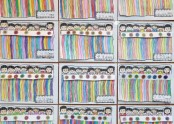 이불도안을 드려 알록달록 색칠하여 대가족도안과 겹쳐 완성하셨습니다.