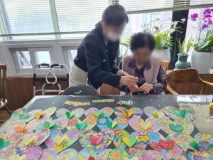 협동 인지활동프로그램 페이지 정보 작성자 관리자 댓글 0건 조회 2회 작성일 26-03-21 10:51 본문 어르신들께 하트도안을 하나씩 나눠드리고 색연필로 알록달록 이쁘게 칠하셨습니다. 하나하나 모여서, 하나의 완성된 작품을 완성하셨습니다. 같은 센터에 나오시는 어르신들과 함께 하니 협동심과 재미가 더욱 더 높아지시는 것 같습니다. 목록 이전글청기백기 실버레크레이션 26.03.21 다음글음악 인지활동프로그램 소개 26.03.21 댓글목록 댓글목록 등록된 댓글이 없습니다.