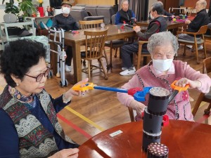 음악 맟춤프로그램 컵쌓기 페이지 정보 작성자 관리자 댓글 0건 조회 200회 작성일 25-04-10 11:39 본문 어르신들께 집게를 나눠드리고 음악에 맞춰 컵쌓기 게임을 진행하였습니다. 노래에 맞춰 진행하니, 또 조게임으로 진행하니 더욱더 박진감 넘치는것 같습니다. 집게를 사용하기 때문에 자연스럽게 소근육운동도 함께 하고 계시네요~! 목록 이전글교구블록 큐브블록 쌓기 프로그램 25.04.10 다음글부평주간보호센터 맞춤형 인지프로그램 모자이크 25.03.28 댓글목록 댓글목록 등록된 댓글이 없습니다.