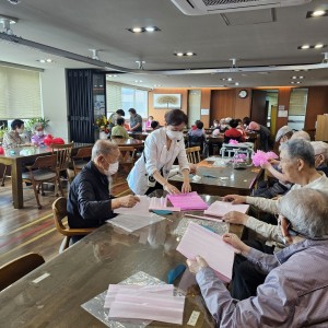 미술 인지프로그램 은혜의 꽃 만들기 페이지 정보 작성자 관리자 댓글 0건 조회 189회 작성일 25-06-19 11:45 본문 어르신들과 함께 은혜의 꽃 만들기 미술 프로그램을 진행하였습니다. 가위와 꽃 만들 재료를 드려 선생님의 시범에 맞춰 이리저리 오려가면서 꽃을 완성했어요 만들기 힘들어 하시는 어르신들은 선생님들이 이동하면서 도와드리니, 모든 어르신들이 참여 가능하십니다 목록 이전글맞춤형 미술 프로그램 " 손 본뜨기" 25.06.30 다음글음악힐링프로그램 25.06.19 댓글목록 댓글목록 등록된 댓글이 없습니다.