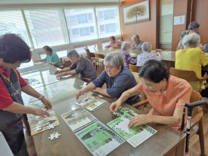 주간보호센터 인지프로그램 퍼즐맞추기 페이지 정보 작성자 관리자 댓글 0건 조회 302회 작성일 25-07-31 11:56 본문 어르신들과 함께하는 퍼즐 맞추기 인지프로그램을 진행하였습니다. 먼저 도안을 나눠드리고 하나씩 차근차근 퍼즐을 맞추셨습니다. 어려운 부분은 선생님들과 주변 어르신들의 도움으로 모두 다 완성하고 계시네요 목록 이전글맞춤형 운동/인지 프로그램 25.08.06 다음글결핵협회 결핵검사 25.07.30 댓글목록 댓글목록 등록된 댓글이 없습니다.